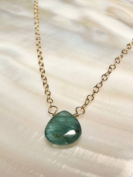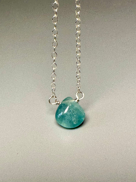Centers a smooth modified pear shape stone hand wired and wrapped on a delicate open link chain; completed with a spring ring clasp, mother of pearl star and heart closure