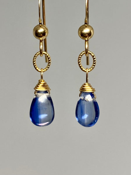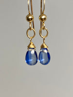 Smooth kyanite stones hand wired and wrapped on a textured oval link, attached to ball and hook earwire.