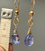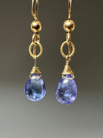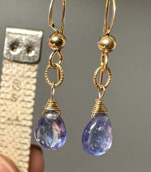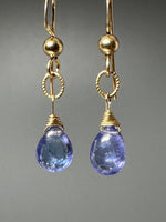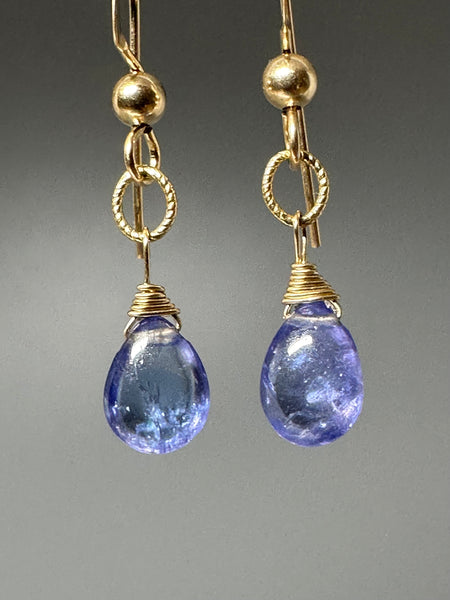 Features a stunning periwinkle blue smooth Tanzanite stone hand wired and wrapped on a textured small circle, ball and hook ear-wire.
